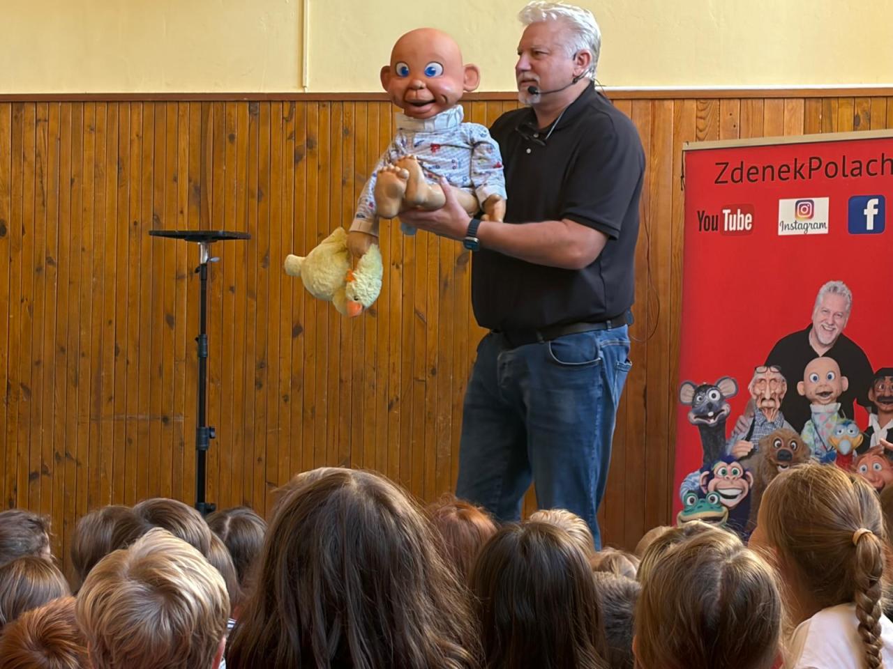 Dne 6.11. k nám do družiny zavítal jediný profesionální břichomluvec v Česku pan Zdeněk Polach s Matýskem a jeho kamarády. Tradičně vtáhl děti do interaktivní show plné smíchu a zábavných momentů. Navštívil nás už po třetí, jelikož je u dětí velmi oblíbený. Děkujeme za skvělou atmosféru.