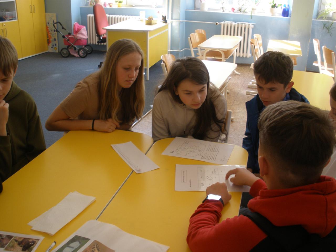 První vyučovací hodinu žáci spolu se svými třídními učitelkami pracovali na plakátu ke Dni Země. Od druhé vyučovací hodiny se pod vedením žáků 9. třídy děti střídaly na jednotlivých stanovištích.